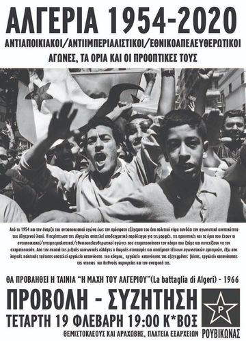 Εκδήλωση για τους αγώνες στην Αλγερία 1954-2020 +προβολή ταινίας την Τετάρτη 19 Φεβρουαρίου στις 19:00 στο Κ*ΒΟΞ (Θεμιστοκλέους & Αραχώβης, Πλ. Εξαρχείων)