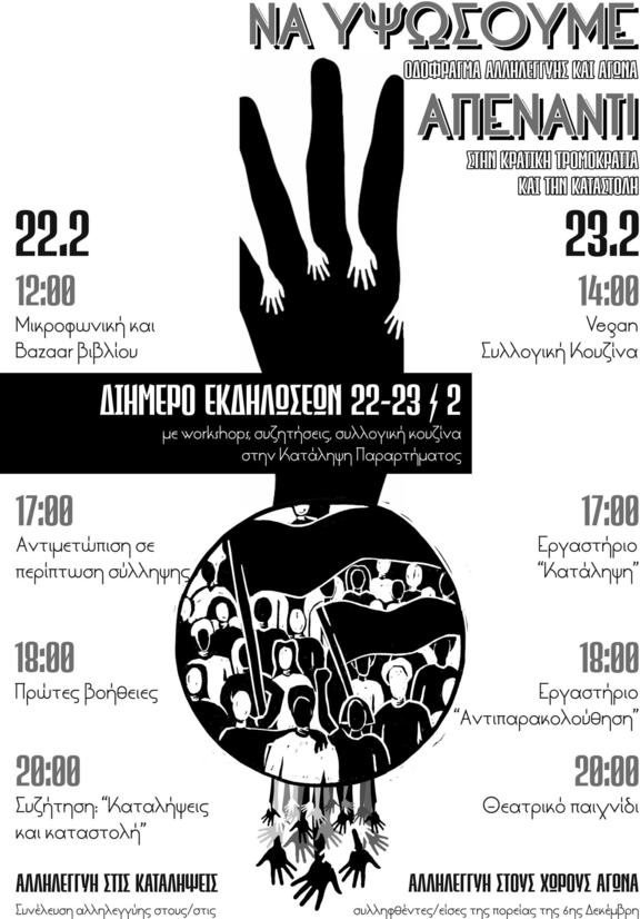 ΔΙΗΜΕΡΟ ΕΚΔΗΛΩΣΕΩΝ 22,23/2 με workshops,συζητήσεις,συλλογική κουζίνα στην κατάληψη Παραρτήματος