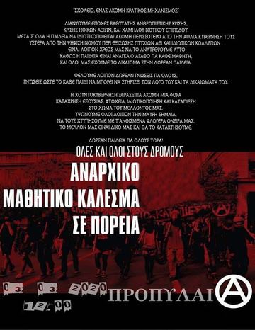 Καλούμε τους μαθητές στο αναρχικό μπλοκ,στην μαθητική πορεία 03/03 ώρα 12:00 Προπύλαια