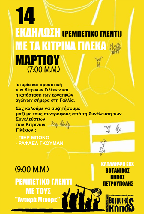 (ακυρώνεται) Εκδήλωση με τα Κίτρινα γιλέκα & ρεμπέτικο γλέντι