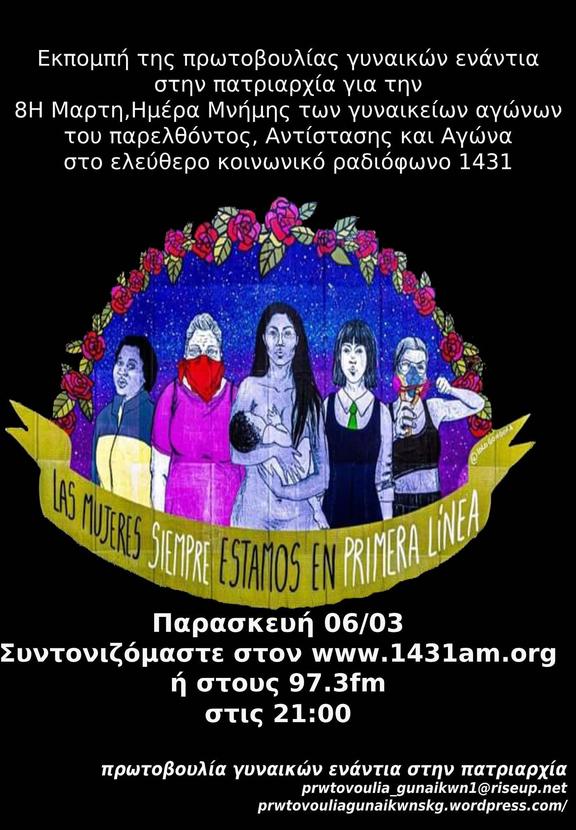 Εκπομπή της πρωτοβουλίας στο Ελεύθερο Κοινωνικό Ραδιόφωνο 1431AM για την 8η Μάρτη, ημέρα Αντίστασης κι Αγώνα