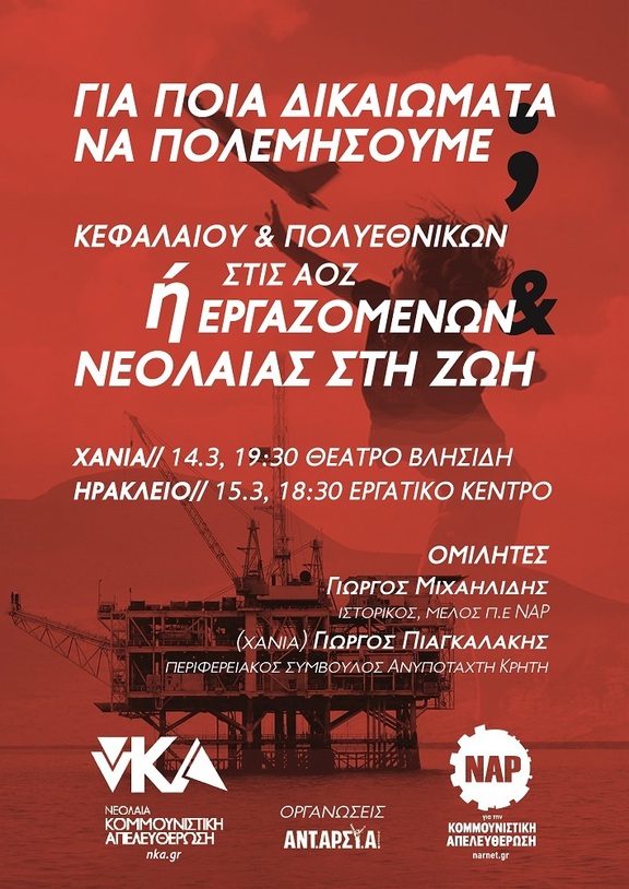 Οι οργανώσεις του Νέου Αριστερού Ρεύματος για την Κομμουνιστική Απελευθέρωση και της νεολαίας Κομμουνιστική Απελευθέρωση Κρήτης , διοργανώνουν εκδηλώσεις :