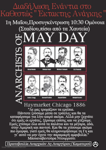 Διαδήλωση ενάντια στο καθεστώς "έκτακτης ανάγκης". 1 Μαΐου προσυγκέντρωση 10.30 Ομόνοια (σταδίου, πίσω από τα χαυτεία)