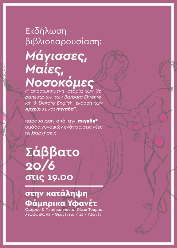 Βιβλιοπαρουσίαση του Μάγισσες, μαίες, νοσοκόμες: Η αποσιωπημένη ιστορία των θεραπευτριών, των Barbara Ehrenreich & Deirdre English, έκδοση από το Αρχείο 71 και Μιγάδα.