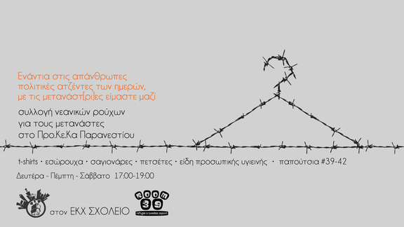 Τις ίδιες μέρες και ώρες καλούμε για συλλογή νεανικών ρούχων για τους 500 μετανάστες στο Προ.Κε.Κα Παρανεστίου.