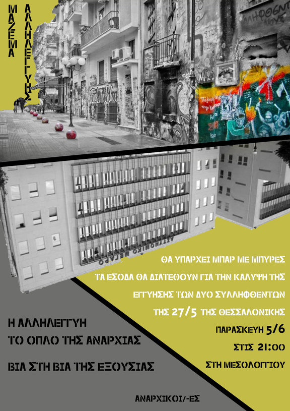 Μάζεμα για την κάλυψη της εγγύησης των δύο συλληφθέντων της 27/5 της Θεσσαλονίκης