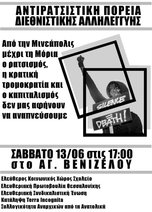 Από τη Μινεάπολις μέχρι τον Έβρο μας ενώνουν οι αντικειμενικές συνθήκες που βιώνουμε ως πολυεθνική εργατική τάξη. Μπορεί να μην μιλάμε την ίδια γλώσσα και να υπάρχουν επιμέρους πολιτιστικές διαφορές, αλλά γνωρίζουμε εξίσου τι σημαίνει η κρατική καταστολή, τι σημαίνει τα χρήματα που πληρωνόμαστε να μην φτάνουν ούτε για τις βασικές μας ανάγκες, τι σημαίνει ο αποκλεισμός από τη δωρεάν περίθαλψη, οι εργοδοτικές καφρίλες που τείνουν να κανονικοποιηθούν μετά την χρηματοπιστωτική κρίση του 2008 και την κρίση της πανδημίας που βιώνουμε σήμερα. Να βρεθούμε λοιπόν, να φωνάξουμε και να αγωνιστούμε ενάντια στο ρατσισμό και στους κοινωνικούς αποκλεισμούς, αλλά κυρίως να παλέψουμε το σύστημα που τα γεννά. Να παλέψουμε αυτούς που απολαμβάνουν τα προνόμια τους κρατώντας την εργατική τάξη διαιρεμένη με βάση το φύλο, τη θρησκεία, τη φυλή, για να εκμεταλλεύονται ντόπιους και μετανάστες. Να παλέψουμε για την οικοδόμηση μιας νέας κοινωνίας χωρίς έθνη, σύνορα, πολέμους και ανισότητες, για ένα κόσμο που όλα θα είναι για όλους. Να παλέψουμε για την αναρχία.