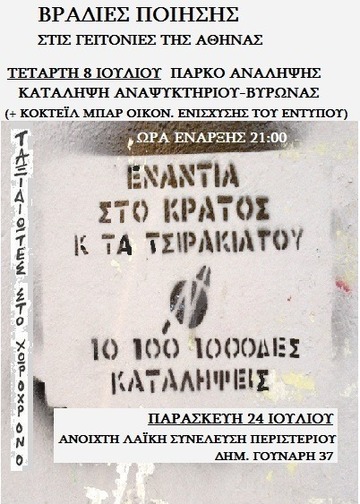 Βραδιές ποίησης δρόμου στις γειτονιές της Αθήνας τον Ιούλιο,
