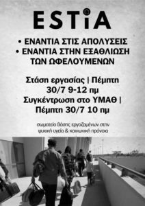 Είμαστε απόλυτα σίγουροι/ες ότι αν δεν κινητοποιηθούμε αυτή η πολλαπλή επίθεση ενάντια στα εργασιακά δικαιώματά μας θα συνεχιστεί. Έτσι κι αλλιώς δουλεύουμε σε έναν κλάδο όπου η επισφάλεια και οι δύσκολες συνθήκες εργασίας είναι στην καθημερινότητά μας. Το Σωματείο βάσης εργαζομένων στον χώρο της ψυχικής υγείας & κοινωνικής πρόνοιας θα παλέψει ενάντια στις απολύσεις στο ESTIA II και στην εξαθλίωση των ωφελούμενων. Ταυτόχρονα συνεχίζουμε να παλεύουμε για την κατοχύρωση όλων των εργασιακών δικαιωμάτων μας (όπως τις συμβάσεις αορίστου χρόνου ενάντια στο αίσχος των επαναλαμβανόμενων συμβάσεων ορισμένου χρόνου) κι όλων των δικαιωμάτων που απορρέουν από αυτά.