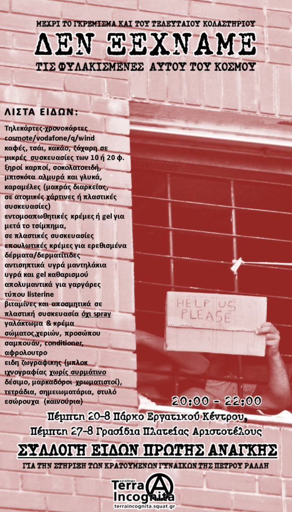 Συλλέγουμε ειδη πρώτης ανάγκης για τις φυλακισμένες του κολαστηρίου της Πέτρου Ράλλη