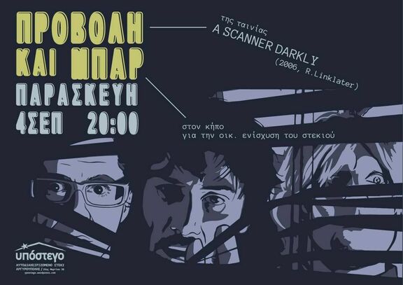 Παρασκευή 4 Σεπτέμβρη στις 20:00 |Προβολή της ταινίας The Darkly Scanner (2006, R. Linklater) | Φτιαγμένη από animation υλικά και βασισμένη στο βιβλίο του Philip Dick η ταινία μας εισάγει σε ένα δυστοπικό -όχι και τόσο- μακρινό μέλλον όπου τα πάντα είναι ρευστά και η παράνοια είναι δίπλα μας.