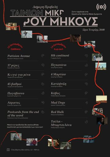 Η Εργατική Λέσχη Νέας Σμύρνης διοργανώνει στην Ταράτσα της διήμερο προβολής ταινιών μικρού μήκους στις 12 και 13 Σεπτεμβρίου από τις 20.00μμ με παρουσία των συντελεστών και συζήτηση.