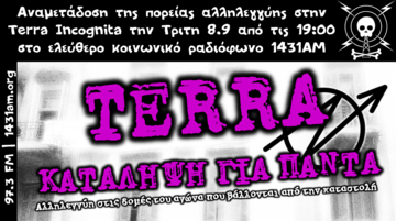 Στηρίζουμε και αναμεταδίδουμε την πορεία αλληλεγγύης στην κατάληψη Terra Incognita την Τρίτη 8 Σεπτεμβρίου στις 19:00.
