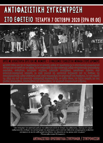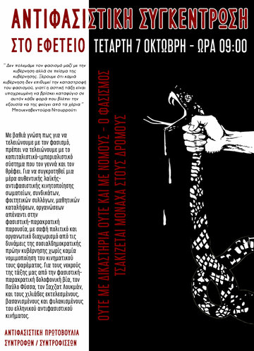 Αντιφασιστική συγκέντρωση Τετάρτη 07 Οκτώβρη 9:00 Εφετείο Αθηνών