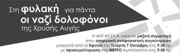 Αντιφασιστική συγκέντρωση: Τετάρτη 7 Οκτωβρίου, 10 πμ., Εφετείο (λεωφόρος Αλεξάνδρας & Λουκάρεως)