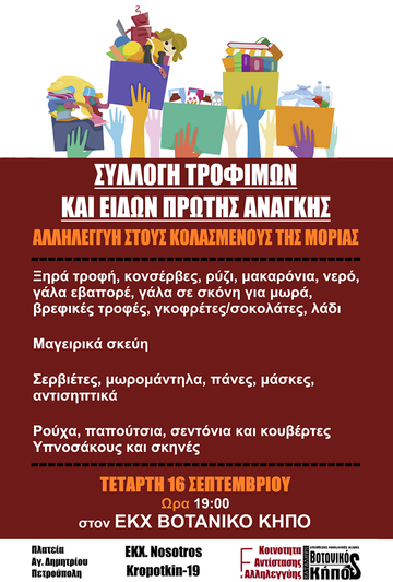 για τους πρόσφυγες και μετανάστες της Μόριας.