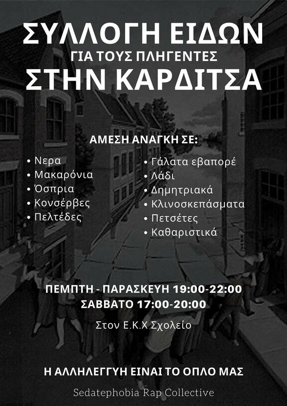 Συλλογή ειδών για τους πλημμυροπαθείς στην Καρδίτσα