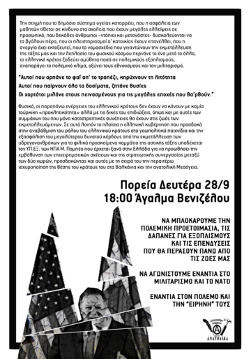 Αντικρατική-Αντιπολεμική πορεία Δευτέρα 28/9 18:00 Αγ. Βενιζέλου