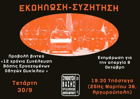 Προβολή βίντεο: 12 χρόνια Συνέλευση Βάσης Εργαζομένων Οδηγών Δικύκλου
