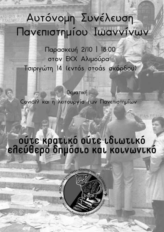 Καλούμε τους φοιτητές/τριες σε συζήτηση για την κακή διαχείριση του κράτους σχετικά με την επαναλειτουργία των πανεπιστημίων εν μέσω Covid-19.