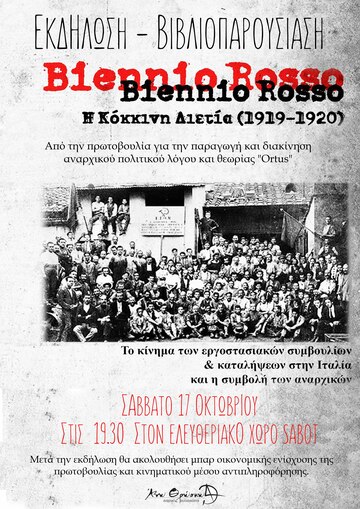Εκδήλωση - Βιβλιοπαρουσίαση: Biennio Rosso - Η Κόκκινη Διετία (1919-1920) + BAR