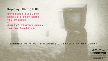 Την Κυριακή 11.10 από τις 19:00 ανοίγουμε το στέκι με Αυτοδιαχειριζόμενο Καφενείο στον κήπο. Παράλληλα, συνεχίζεται η συλλογή τροφίμων και είδών πρώτης ανάγκης για τους/τις πληγέντες κατοίκους και τα διασωθέντα ζώα της Καρδίτσας.