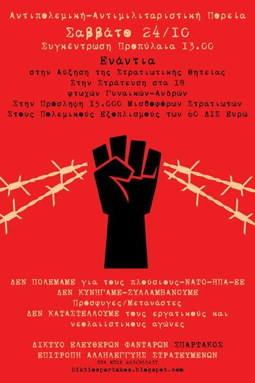 Αντιπολεμική - Αντιμιλιταριστική διαδήλωση | Σάββατο 24/10 - 13:00