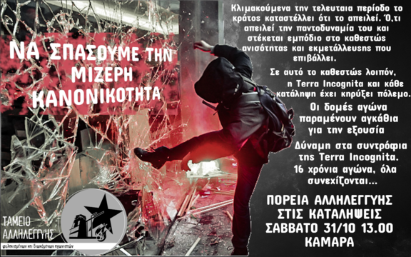Όλοι και όλες στη Διαδήλωση αλληλεγγύης το Σάββατο 31/10, 13:00 Καμάρα