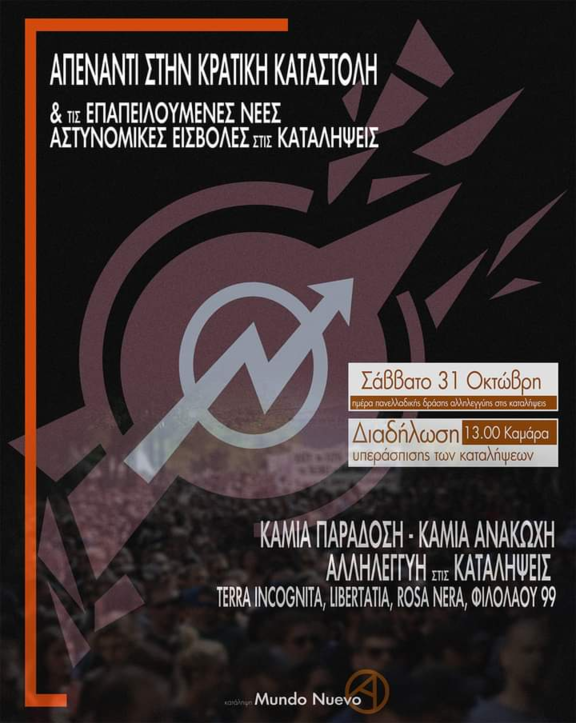 Σάββατο 31 Οκτώβρη ημέρα πανελλαδικής δράσης αλληλεγγύης στις καταλήψεις