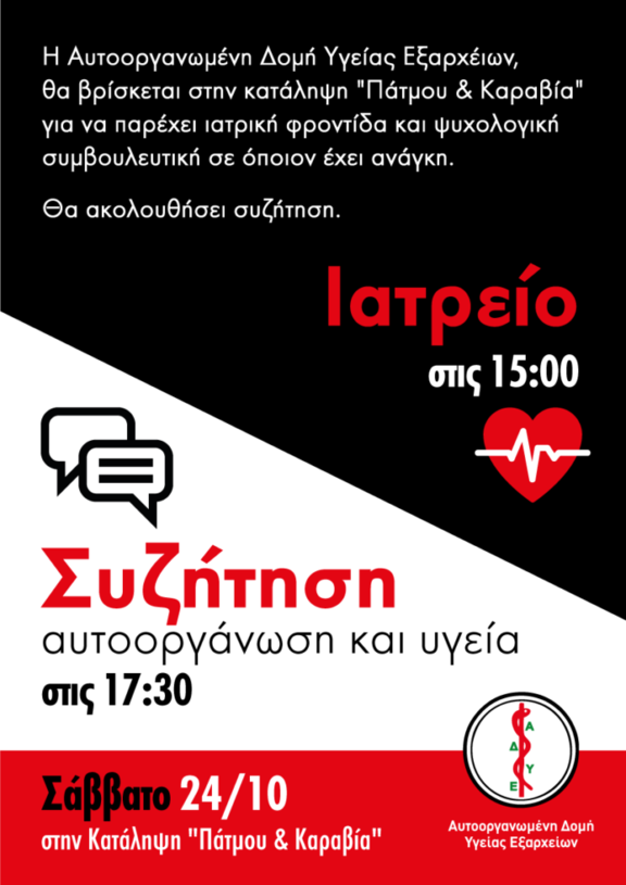 Κατάληψη Πάτμου & Καραβία Ευγενίου Καραβία 23, Κάτω Πατήσια (5' από ΗΣΑΠ Κάτω Πατήσια, Τρόλεϊ 3,5,11,14 & λεωφορεία Α8,608: στάση ΑΓΙΟΣ ΛΟΥΚΑΣ)