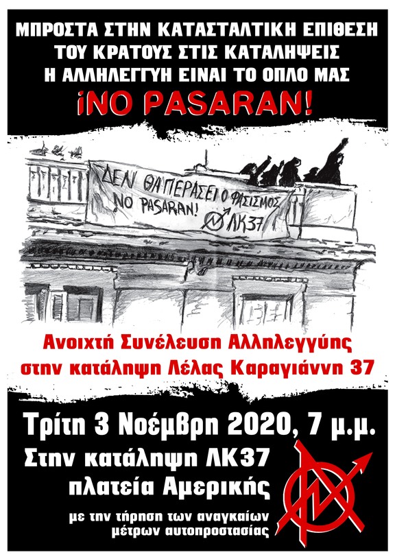 Τρίτη 3 Νοέμβρη 2020, 7 μ.μ. στην κατάληψη ΛΚ37