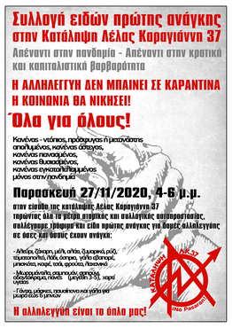 Συλλογή ειδών πρώτης ανάγκης στην Κατάληψη Λέλας Καραγιάννη 37