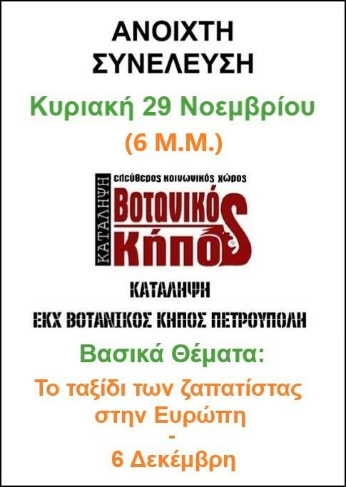 Ανοιχτή συνέλευση Ελεύθερου Κοινωνικού Χώρου Βοτανικός Κήπος
