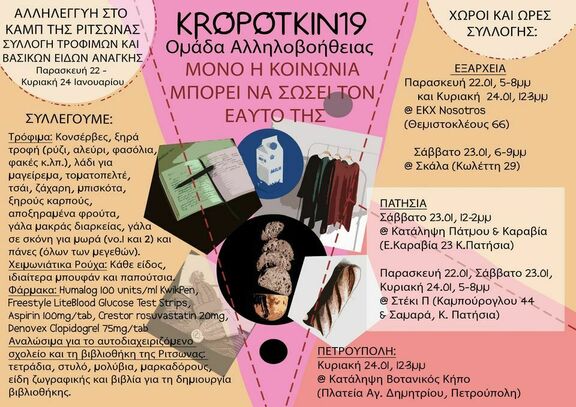 ΑΛΛΗΛΕΓΓΥΗ ΣΤΟ ΚΑΜΠ ΤΗΣ ΡΙΤΣΩΝΑΣ - ΣΥΛΛΟΓΗ ΤΡΟΦΙΜΩΝ ΚΑΙ ΒΑΣΙΚΩΝ ΕΙΔΩΝ ΑΝΑΓΚΗΣ