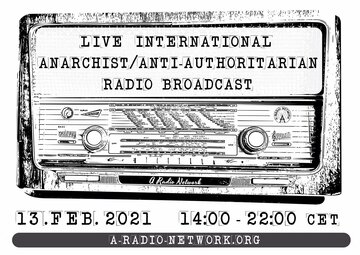 Join the A-Radio Network on Saturday, February 13th of 2021 from 14:00 till at least 22:00 o'clock central European time, that's 8am to 2pm eastern or New York time for our 6th transnational live broadcast of anti-authoritarian and anarchist radios from deep within where anarchy reigns.