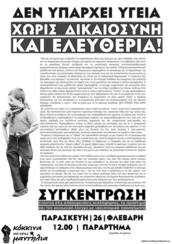 …ενάντια στις απαγορεύσεις κυκλοφορίας, τα πρόστιμα και τον κοινωνικό έλεγχο με υγειονομικά προσχήματα.