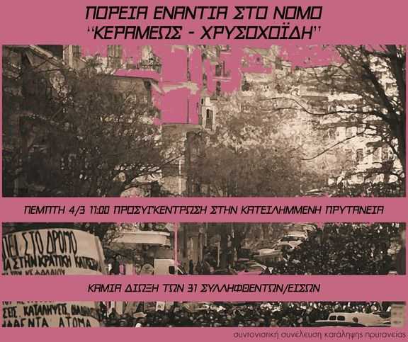 *Μετά την Πορεία, θα πραγματοποιηθεί η Συντονιστική Συνέλευση της Κατειλημμένης Πρυτανείας