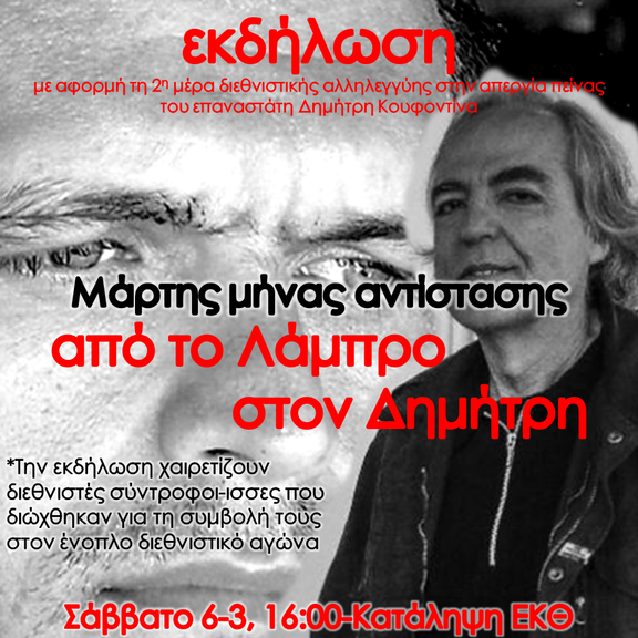 Ζωντανή αναμετάδοση εκδήλωσης διεθνιστικής αλληλεγγύης στο Δ.Κουφοντίνα