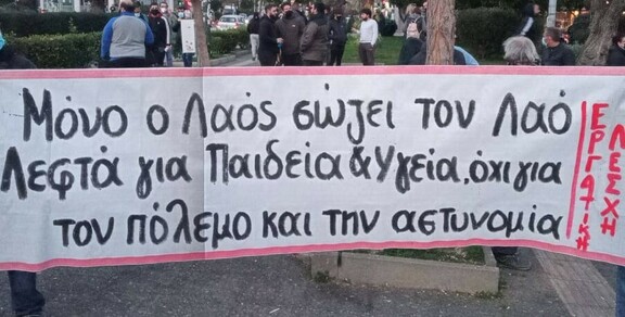 Στην συνθήκη μόνιμης εξαίρεσης που έχει εγκαθιδρυθεί, οι επιθέσεις κράτους και αφεντικών εναντίων των καταπιεσμένων και της εργατικής τάξης εντείνονται. Η στρατικοποίηση της μητρόπολης με κάθε είδους κατασταλτικές δυνάμεις και η βίαιη διάλυση των συγκεντρώσεων στο Σύνταγμα την Παρασκευή και το Σάββατο 5 και 6 Μάρτη, οι αυξημένες κινήσεις των αστυνομικών δυνάμεων και οι τραμπουκισμοί στους οποίους επιδίδονται και άλλα περιστατικά, πλέκουν το νήμα μιας κοινωνίας αστυνομοκρατούμενης. Με την κυβερνητική κάλυψη, οι κατασταλτικοί μηχανισμοί του κράτους δείχνουν τον πραγματικό και σαδιστικό τους εαυτό επιτελώντας το αληθινό τους έργο. Την φίμωση και τρομοκράτηση με κάθε μέσο, κάθε φωνής που στέκεται ενάντια στο τερατούργημα που δημιουργείται.