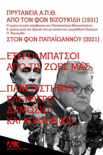 Αν υπήρχε κάποιος σε αυτή τη χώρα που μετά τις αλλεπάλληλες εικόνες αστυνομικής βίας όχι μόνο σε διαδηλώσεις και συγκεντρώσεις, αλλά ακόμα και σε πλατείες, πάρκα και δημόσιους χώρους απέναντι σε ανθρώπους που τολμούν να κάνουν τη βόλτα τους, αμφέβαλε για το τι θα σημαίνει η είσοδος μπάτσων στα πανεπιστήμια, ο πρύτανης του ΑΠΘ, Νίκος Παπαϊωάννου, φρόντισε να μας δείξει: