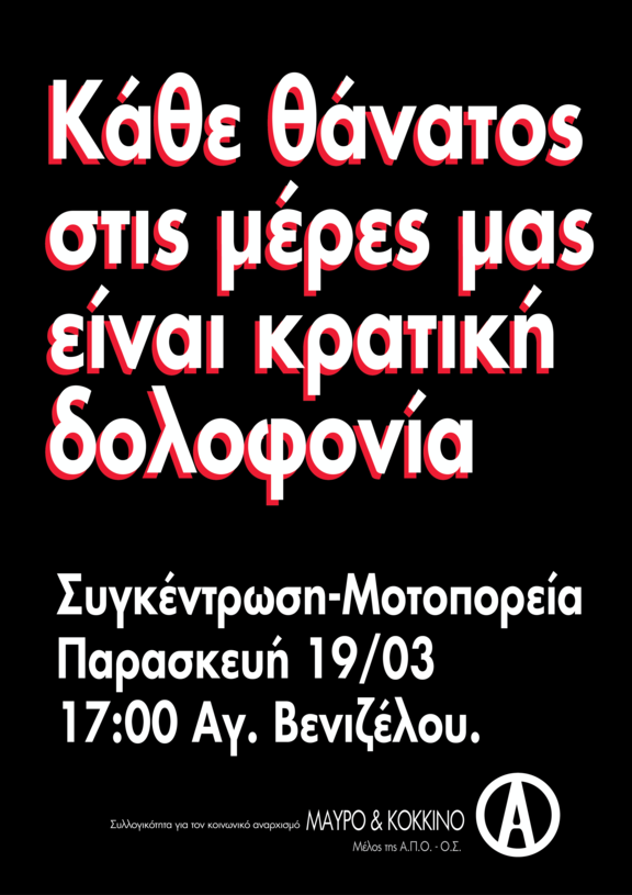 Όλοι στους δρόμους ενάντια στην κρατική αυθαιρεσία, την θρασυδειλία των εξουσιαστών, την χουντικής κοπής αστυνομοκρατία. Καμία κρατική δολοφονία δεν θα μείνει αναπάντητη. Από τη Νέα σμύρνη μέχρι της Σαλονίκη, ο φόβος της καταστολής, αντίσταση να γίνει.