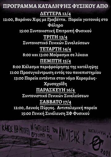 Αναδημοσιεύουμε το πρόγραμμα κατάληψης του ΣΦ Γεωλογίας για αυτή την εβδομάδα.