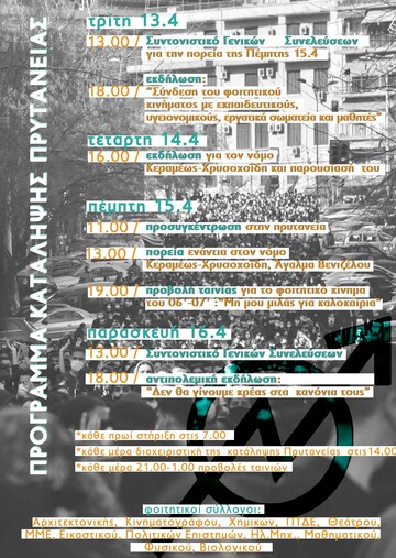 Αναδημοσιεύουμε το πρόγραμμα κατάληψης του Σ.Φ Δημοσιογραφίας και ΜΜΕ