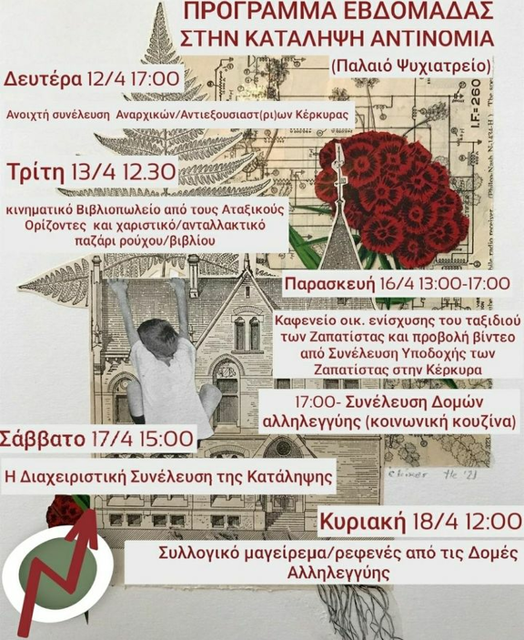 Αφίσα με το εβδομαδιαίο πρόγραμμα της Κατάληψης Αντινομία (Παλαιό Ψυχιατρείο)
