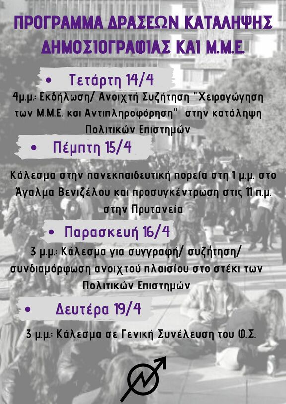 Αναδημοσιεύουμε το πρόγραμμα κατάληψης του Σ.Φ Δημοσιογραφίας και ΜΜΕ