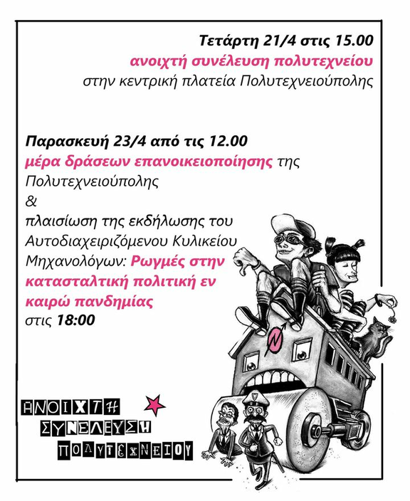 // Τετάρτη 21/4 στις 15.00 ανοιχτή συνέλευση πολυτεχνείου στην κεντρική πλατεία Πολυτεχνειούπολης