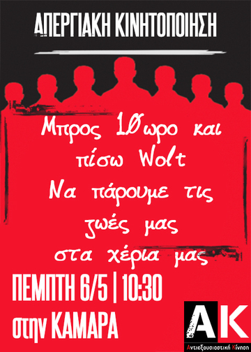 ΑΘΗΝΑ: Τετάρτη 5 Μάη συγκέντρωση, πλατεία Κοραή, 6μμ Πέμπτη 6 Μάη απεργιακή συγκέντρωση και πορεία, πλατεία Κοραή, 11πμ ΘΕΣΣΑΛΟΝΙΚΗ: Πέμπτη 6 Μάη απεργιακή συγκέντρωση και πορεία, Καμάρα, 10.30πμ