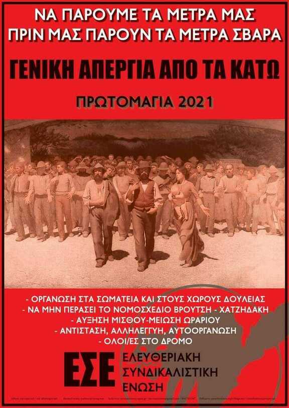 Ενώ περισσότεροι από δέκα χιλιάδες άνθρωποι έχουν χάσει τη ζωή τους από την πανδημία σε όλη τη χώρα, επιχειρείται αυτή να αξιοποιηθεί ως εργαλείο αντικοινωνικής επιβολής της νεοφιλελεύθερης διαχείρισης ώστε να υλοποιηθούν ταχύτερα και με σκληρότερους όρους οι συνολικές αναδιαρθρώσεις που λεηλατούν την μεγάλη κοινωνική πλειοψηφία και έχουν στόχο την διασφάλιση και διεύρυνση των προνομίων των οικονομικών και πολιτικών ελίτ. Από την πλήρη διάλυση της δημόσιας υγείας, την υποβάθμιση της δημόσιας παιδείας, την ψήφιση του νέου αντεργατικού νομοσχεδίου μέχρι τις δολοφονίες εργατών στα κάτεργα της μισθωτής σκλαβιάς, την περαιτέρω λεηλασία του φυσικού κόσμου, το ρατσιστικό καθεστώς εξαίρεσης για πρόσφυγες και μετανάστες, την κρατική τρομοκρατία ο παρηκμασμένος κόσμος του κράτους και του καπιταλισμού δεν έχει να υποσχεθεί τίποτα περισσότερο πέρα από βαρβαρότητα, πολέμους εκμετάλλευση και καταπίεση.
