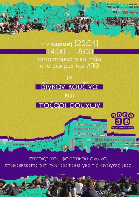 Στο πλαίσιο δράσεων επανοικειοποίησης του απθ για τις ανάγκες μας, συμμετέχουμε με βίγκαν κουζίνα και παζάρι ρούχων αυτήν την Κυριακή 14:00-18:00 στα γρασίδια φιλοσοφικής.