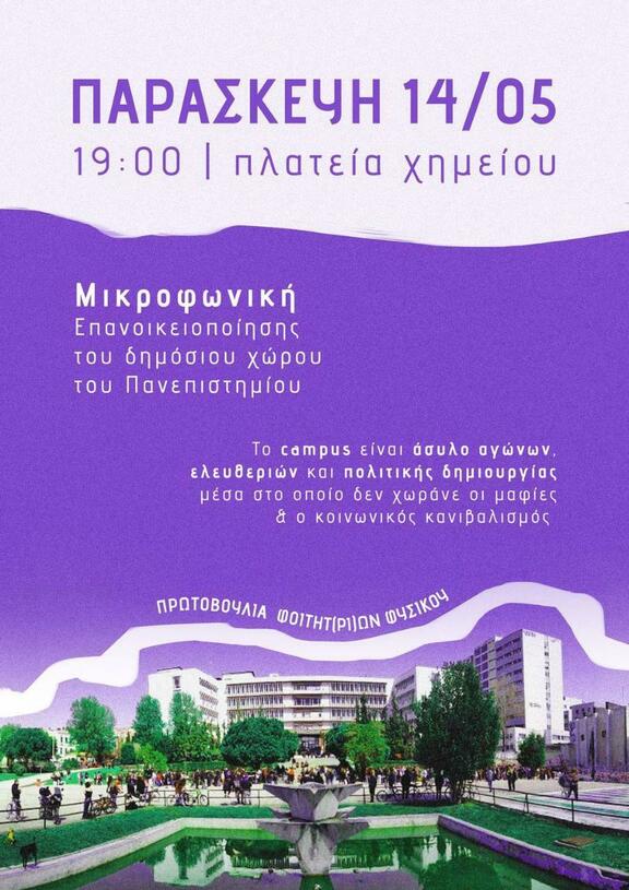 Το campus είναι άσυλο αγώνων, ελευθεριών και πολιτικής δημιουργίας μέσα στο οποίο δεν χωράνε οι μαφίες και ο κοινωνικός κανιβαλισμός.